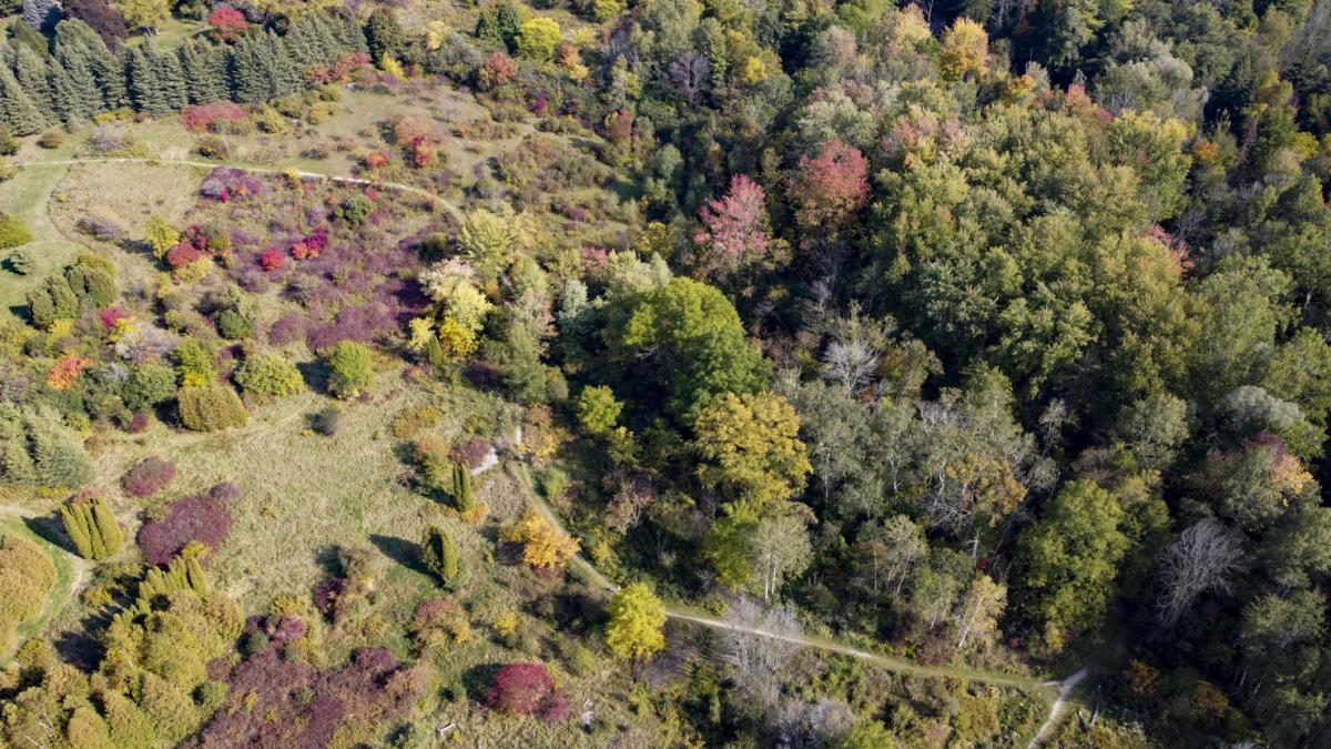 The Arboretum is home to an extensive and diverse collection of trees and other woody plants. These include species growing naturally within our forested areas, plants intended to naturalize across the landscape, and distinctive specimen plants from throughout the Northern Hemisphere showcased in our gardens and collections. Each season offers its own highlights: spring brings the vibrant blooms of roses, lilacs, serviceberries, and tulip trees; summer offers cool shade beneath specimen trees in the Park in The Garden, creating an ideal setting for picnics; autumn showcases stunning displays of orange, yellow, red, and purple foliage from sumac, maples, and oaks; and winter reveals the striking, stately forms of our many evergreen species set against the snow.