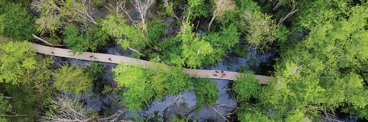 This 1.5km trail is part of a program associated with Wall-Custance Funeral Home and Chapel in Guelph. Branching off the loop through Memorial Forest Grove, it functions as a naturalized corridor that travels through The Arboretum and connects to Mitigwaaki Forest. Near the start of the trail by Kiosk entrance of the Arboretum, a loop passes through areas of memorial plantings, where decades trees have been dedicated in memory of loved ones. The trail also features a boardwalk crossing a naturalized wetland, offering views into this sensitive ecosystem.